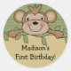 Cute baby monkey hanging from a tree branch birthday sticker. Great for gift bag & envelope seals! Customise with your birthday information and you're all set to go! Matching invitations and postage stamps available in our shop www.celebrateitinvites.com.