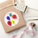 Colourful party balloons in red orange blue green yellow. PARTY letters written across balloons in black text. Personalise for first birthday or any age.