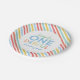 First birthday party bright colourful stripe decor paper plate