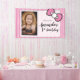Welcome your little one to the world of birthday celebrations with our Personalised First Birthday Party Photo Welcome Banner. This delightful banner is the perfect way to introduce your little girl to her special day, featuring her adorable photo and name prominently displayed against a backdrop of pink and white stripes.