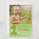 A fun, juvenile invitation with a garden background and a numeral one sporting eyes and a tongue.