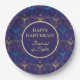 First Candle of Hanukkah. Happy Hanukkah Festival of lights party invitation beauty Jewish holiday card. Beautiful Jewish Holiday Chanukkah background with traditional Chanukah decorative symbols - wooden dreidels (spinning top), doughnuts, hanukkiah menorah, candles, star of David and glowing lights wallpaper gold hanukkiah navy blue pattern pattern. Hanukkah festival of lights event decoration. Jerusalem, Israel. Crafts & Party Supplies > Party Supplies > Tableware > Paper & Party Plates Funny Design with with text template. Personalise them by adding name or wishes text. Two sides design. Customise