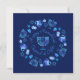 Hanukkiah Symbol. Happy Hanukkah Party Jewish Holiday Blue Menorah. Jewish Holiday Chanukkah Decoration with traditional Chanuka decorative symbol - Navy Blue colour hanukkiah menorah, candlestick with candles, star of David and neon blue glowing lights illustration. Hanukkah Festival of lights Event Decoration. Jerusalem, Israel. Invitations & Stationery > Greeting Cards > Holiday & Seasonal Cards > Hanukkah Cards Judaica Modern Design with text template. Personalise them by adding name or wishes text. Two sides design.