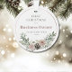 First Christmas as a Business Owner Personalised with Name and Year Round Acrylic Keepsake Ornament Gift... A delicate bouquet of pink roses, pine cones, and Christmas botanicals decorates the rose gold metallic circle framing the text of your holiday themed ornament. The example wording on this keepsake ornament reads "First Christmas as a Business Owner" in elegant serif typography followed by the person's name and the current year. All text can be easily revised on the personalisation template.