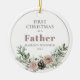 First Christmas as a Father Personalized with Name and Year Round Ceramic Keepsake Ornament Gift... A sweetl bouquet of pink roses, pine cones, and Christmas botanicals decorates the rose gold metallic circle framing the text of your holiday themed ornament. The example wording on this keepsake ceramic ornament reads "First Christmas as a Father" in elegant serif typography followed by the new dad's name and the current year. All text can be easily revised on the personalization template.