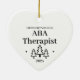 First Christmas as an Aba therapist heart ornament for a new job in Applied Behaviour Analysis working with autism and more. Elegant porcelain ceramic holiday ornaments in white with black lettering. Featuring Christmas trees and stars.