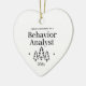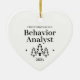 First Christmas as a behaviour analyst heart ornament for a new job in a clinic. Elegant porcelain ceramic holiday ornaments in white with black lettering. Featuring Christmas trees and stars.