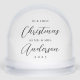 Holiday snow globe home decor and gift for the newlyweds featuring modern calligraphy "Our 1st Christmas as" with personalised name, year, and photo.