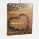 Christmas ornament featuring your own custom photo on one side and on the other an image of a heart on the beach.