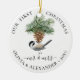 This special wedding keepsake ornament celebrates your first Christmas as husband and wife. A cute little chickadee is perched on a pine cone in the centre.