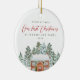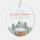 This beautiful first Christmas as mummy and daddy keepsake ornament features pretty script lettering and a cosy illustrated holiday home. Custom year and fully editable text are easily personalised on the front of the ornament. The back is one full photo of the new family of three. Can be customised for family of four, family of five, and more! This elegant ornament makes a beautiful gift for new first time parents, and can also be a thoughtful gift to friends and family as an announcement of your child's birth.