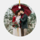 First Christmas Calligraphy Pines Plaid PHOTO BACK Ceramic Tree Decoration