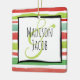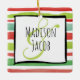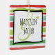 Celebrate your first Christmas as an engaged couple with this modern custom ornament featuring Christmas candy stripes in red, green and white with modern black typography on white with a wavy black borderline. Personalise it with your names on the front and "First Christmas Engaged" with the year on the back. Designed by © Tim Coffey.