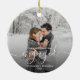 First Christmas Engaged Custom Photo White Script Ceramic Tree Decoration
