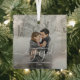 First Christmas Engaged Custom Photo White Script Glass Tree Decoration