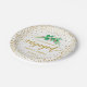 These paper plates are perfect for your holiday engagement party. This design features a sprig of watercolor holly with green leaves and red berries. Below it reads "Our first Christmas Engaged" in faux gold typography with your names and year to personalize bordered by faux gold confetti. Designed by artist Susan Coffey.