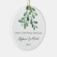 Celebrate your first Christmas as an engaged couple with this stylish photo ceramic ornament.