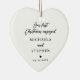 Celebrate your first Christmas engaged with this romantic heart-shaped photo ornament. The front features beautifully paired modern serif and elegant handwritten script typography with space to customize your names and engagement date. The reverse side is personalized with a favorite couple’s photo to capture your special moment in a timeless keepsake. This ornament adds a sentimental and stylish touch to your holiday décor or makes a thoughtful gift for newly engaged couples. Its classic black and white palette with sophisticated lettering suits a wide range of aesthetics. Perfect for marking milestones and making memories, this ornament blends modern romance with timeless design for a truly meaningful Christmas treasure.