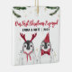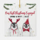 First Christmas engaged or together or married ornament. Funny penguins couple wearing Santa hat and Rudolph reindeer horns. Update with your names and date, it's a template!