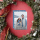 First Christmas Engaged Photo Blue Foil Holiday Card