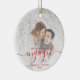 First Christmas Engaged Photo Bright Red Script Ceramic Tree Decoration