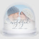 First Christmas Engaged Photo Dusty Blue Script Snowglobe