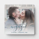 First Christmas Engaged Photo Metallic Blue Script Plaque