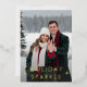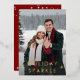 Create a personalised and heartfelt holiday card and engagement announcement with this elegant design. Featuring your own special photo on the front, this card captures the joy and warmth of the season. The gold foil text proclaiming "Holiday Sparkle" adds a festive touch, while the red background and corner splashes of sparkling lights create a winter wonderland atmosphere. The modern white text ensures a clean and contemporary look. This card is the perfect way to share your holiday greetings with loved ones, creating lasting memories of the season. Created by Simply Farmhouse Press.