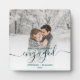 First Christmas Engaged Photo Teal Blue Script Plaque