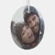 This simple modern personalised holiday ornament is perfect for couples newly engaged and features your photo on the front with white typography reading "Our First Christmas Engaged · 20XX  · (Names)"  with your names to personalise. Best of luck on your upcoming wedding. Happy holidays from our family to yours!