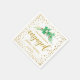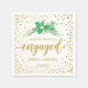This elegant paper napkin is perfect for holiday engagement parties. The design features a sprig of watercolor holly with green leaves and red berries. Below is faux gold typography that reads "Our first Christmas engaged" with your names and year to personalise bordered by faux gold confetti. Designed by artist ©Susan Coffey.