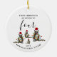 A beautiful custom Christmas ornament for families of four featuring cute Christmas themed raccoons. A personalised Family First Christmas Ornament. A Christmas ornament that allows you to customise to your family names and year. An ideal family Christmas keepsake.