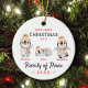 Our first Christmas Family of Three Ceramic Ornament. Penguin Family of Three First Christmas Ceramic Ornament for parents who just had their first child with mum, dad and baby penguin people. Our first Christmas as a family of three personalised penguins keepsake ornament. Celebrate the joy of a growing family with our "Our First Christmas as a Family of 3" ornament – a heartfelt keepsake for new parents to cherish their first holiday season with their little one. This cute penguin family ornament captures the warmth and wonder of welcoming a first child, personalised with the family's names and the year for a truly one-of-a-kind piece. Made to hang proudly on the tree, it brings a touch of elegance and warmth with festive details that are sure to spark memories each holiday season.