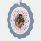 This Christmas family of three dusty blue photo paper Ornament Card is a beautiful way to celebrate the holiday season. It is designed to hang as an ornament and can be used to brighten up any space throughout the year. The card features a lovely photo of a mum, dad, and baby in a delightful frame with berries and leaves. Two dusty blue hearts add a touch of playfulness to the photo, while the border in dusty blue adds an elegant touch. This card is perfect for those who want to create cherished memories with their loved ones.
