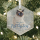 Commemorate your pet's first Christmas in their new home with this beautiful modern keepsake ornament. The words "First Christmas" appear in elegant blue script. Replace the sample image with a photo of your cat or dog and add their name and the year in blue sans serif font. A white gradient filter helps make the text pop.
