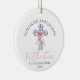 Godmother ceramic Christmas ornament with a pink and blue religious cross with a bow, and the message "god bless" and the baptised baby's name. Personalised keepake for the godparents with a double-sided design.