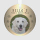 First Christmas Gold Snowflake Puppy Photo Ornament. Snowflakes and gradient golden metallic background. Personalise the ornament with your dog`s photo, name and year of birth - insert your favourite puppy photo. You can use this custom ornament for any pet. A great holiday keepsake for a dog owner.