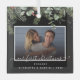 First Christmas in Engaged Greenery Photo Metal Ornament . What a lovely way to remember your first Christmas as an Engaged couple. ! You'll recall this special moment each year when you decorate your Christmas tree. Ornament shown with Our first Christmas in pretty script typography, home photo, family name and year. Ornament is part of a collection..