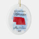 A Personalised Nebraska State Ornament used for Christmas occasion to celebrate the first Christmas living together as a either as a couple, family or newlyweds in the United States of America.