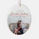 This festive holiday ornament features "our first Christmas in our new home" typography with pretty red script. Your new street address is included with the personalized year, along with your customized photo! The back is the full address and new homeowner's name. A beautiful holiday gift!