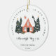 This cute ornament "FIRST CHRISTMAS IN OUR NEW HOME" features a watercolor illustration of a cozy winter house and pine trees covered in a soft blanket of snow. The serene winter scene adds a touch of warmth and nostalgia, making it the perfect keepsake to celebrate a couple's or family's first holiday in their new home. With its charming design and festive sentiment, this ornament will beautifully adorn any Christmas tree and serve as a treasured reminder of this special milestone year after year. Click on "Personalize this template" to customize the message and names. If you wish to change the fonts, placements and colors of the texts, go to "Edit using Design Tool".