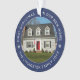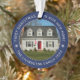 Personalise this modern and elegant 'First Christmas in Our New Home' ornament with a photo of your house, your last name or family name, and the year it was purchased. Elegant navy blue (background colour can be modified) and white round-shaped text and snowflake accents beautifully frames the photo. Photo tip: crop photo to a square format before uploading to the site.