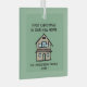 Personalised Christmas tree ornament keepsake to celebrate your new home this year. Designed with a cute hand-sketched house and black text on a green background. The text can easily be changed to your own personalisation.
