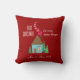 This Christmas pillow is the perfect gift for the new home owner. If features a graphic of a cute little house with red hearts streaming from the chimney and decorated trees next to the house. Customisable text reads: First Christmas in our new home. Customisable text at the bottom allows for names and year.
