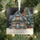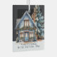 First Christmas in our new home personalised ornament with a beautiful cottage style house and a big beautiful Christmas tree featured on a starry dark night sky - easy to personalise this custom create it yourself holiday decor from Ricaso