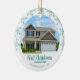 A perfect keepsake ornament to mark the first Christmas in a new home. The design offers a photo frame for a picture of your new home and custom text to personalize with your name and year.