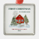 Celebrate your first Christmas in your new home together. Use the personalise function to make it your own. This boho chic ornament features a watercolor style cosy red wooden home in a snowy winter setting with evergreen trees, a fun sleigh and sign in the front yard. The house has a comforting and welcoming feel and the outside is snow covered. This also makes a great gift to new homeowners of family, friends, colleagues and others. Goes well on other ornaments and products. Merry Christmas and congratulations!
