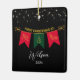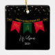 Celebrate your Mr. and Mrs. First Christmas with this elegant Couples First Christmas Ornament. Set on a sleek black background adorned with silver stars, this ornament features the words "Mr. and Mrs." in luxurious gold script, accented by classic red and green Christmas colours. Personalise it with the couple's names for the perfect newlywed gift that captures the magic of their first holiday season together. Ideal for creating a lasting keepsake that will be cherished for years to come