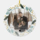 This is a beautiful green and gold watercolor Christmas Wreath Photo Ornament to commemorate The First Christmas Married as Mr & Mrs with the Couple's Photo at the back.