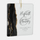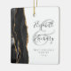 This elegant modern ornament features a black watercolor agate design trimmed with faux gold glitter. Easily customise the charcoal grey text on a white background, with the names of the bride and groom in whimsical handwriting calligraphy over a large pale grey ampersand. The words "First Christmas Married" appear in serif font along with the customisable year.